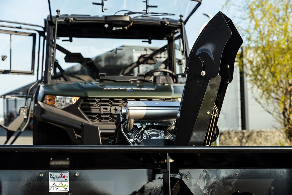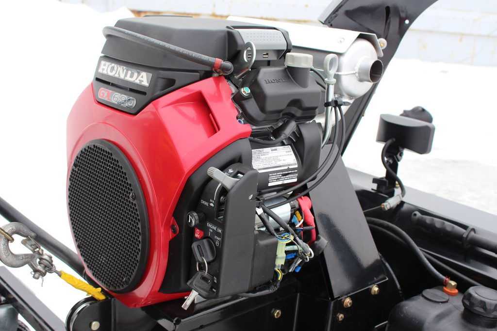 Pracovní záběr 167cm (66"), benzínový motor Honda 22HP, elektrické startování, zcela bezúdržbová převodovka, elektromagnetická spojka, rychlá montáž na většinu UTV za méně než 5 minut, plně elektrické ovládání přímo ze sedadla řidiče
