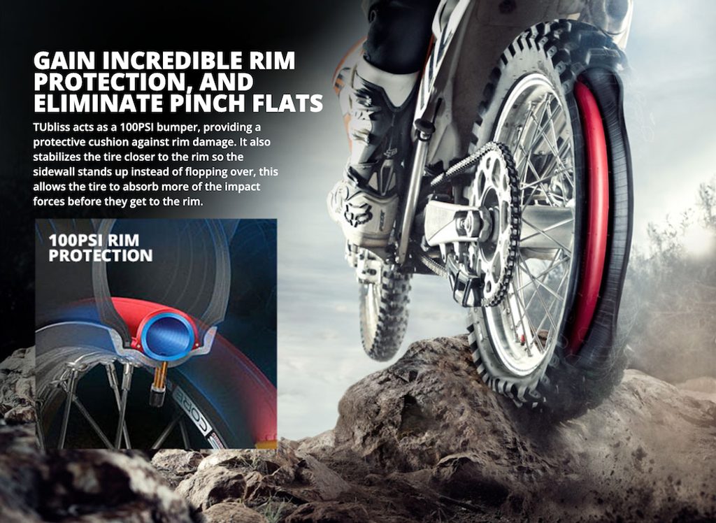 TUbliss nahrazuje konvenční duše malou červenou vložkou 100 psi, která vytváří dvě různé tlakové zóny uvnitř samotné pneumatiky. To umožňuje neuvěřitelných 100 psi pro ochranu ráfku, zvýšenou stabilitu pneumatiky a eliminuje defekty způsobené proražením duše o ráfem. Díky tomu můžete v pneumatice vozit nízký tlak a to zvyšuje trakci a přispívá plynulejší jízdě.