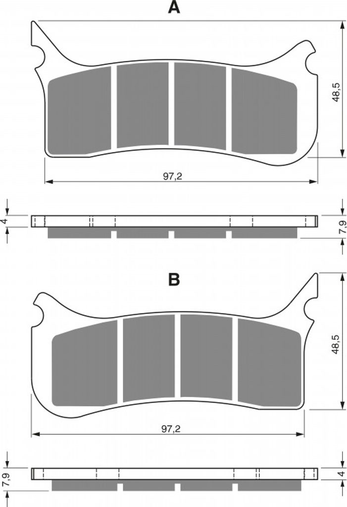 Sintrované brzdové destičky pro lehčí motocykly a běžné použití. Silniční typy mají homologaci TÜV.