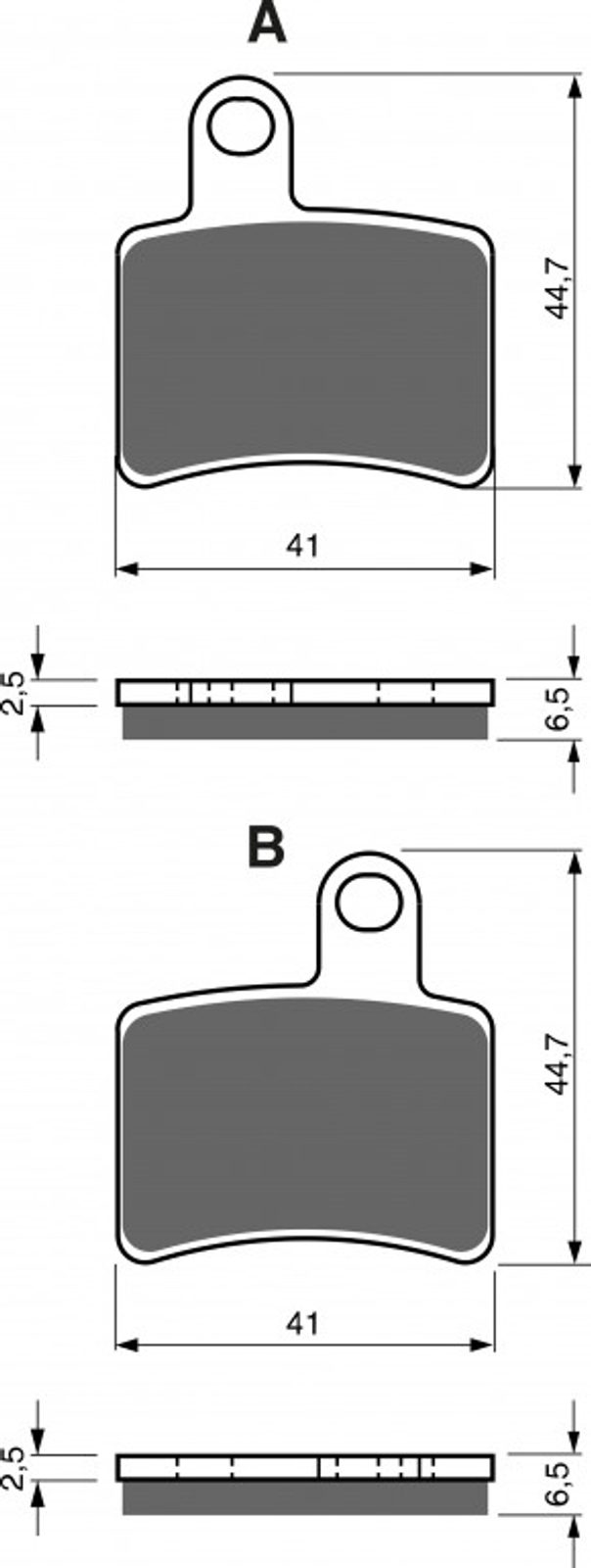 Sintrované brzdové destičky pro lehčí motocykly a běžné použití. Silniční typy mají homologaci TÜV.