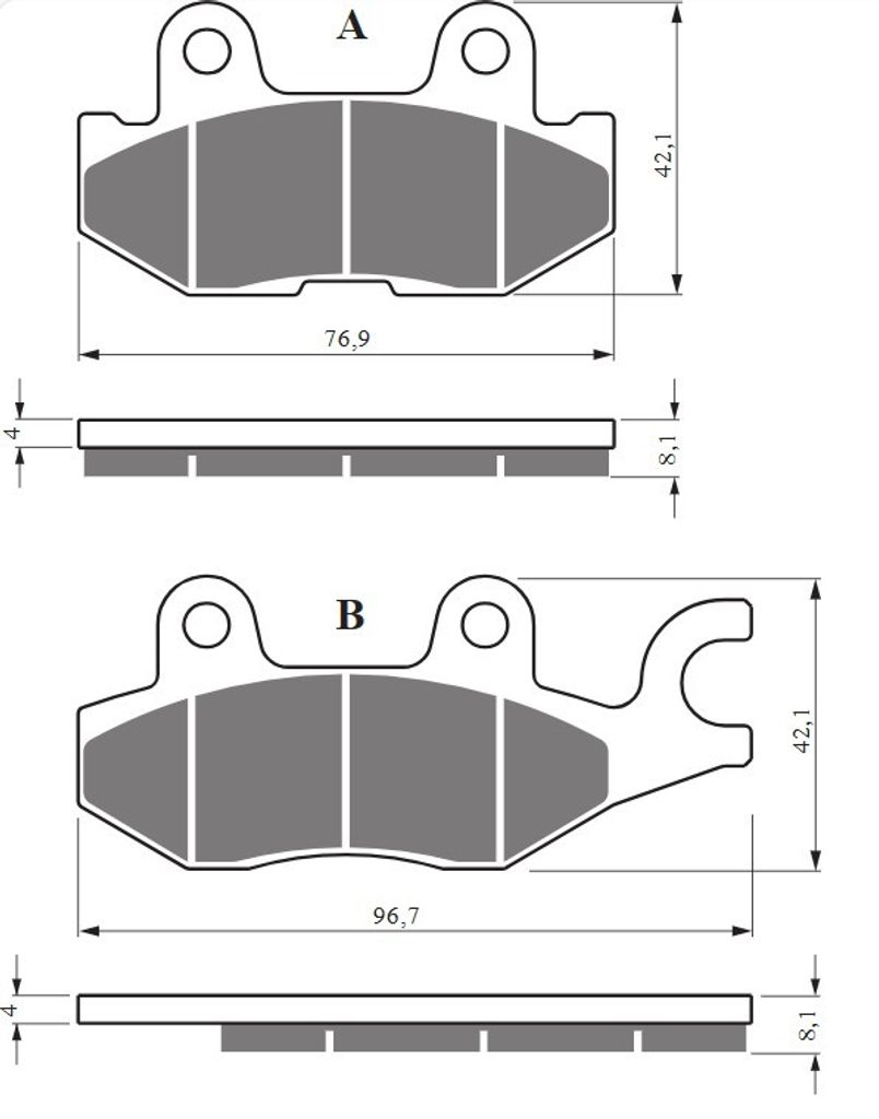 Sintrované brzdové destičky pro sportovní použití nebo těžší motocykly. Silniční typy mají homologaci TÜV.