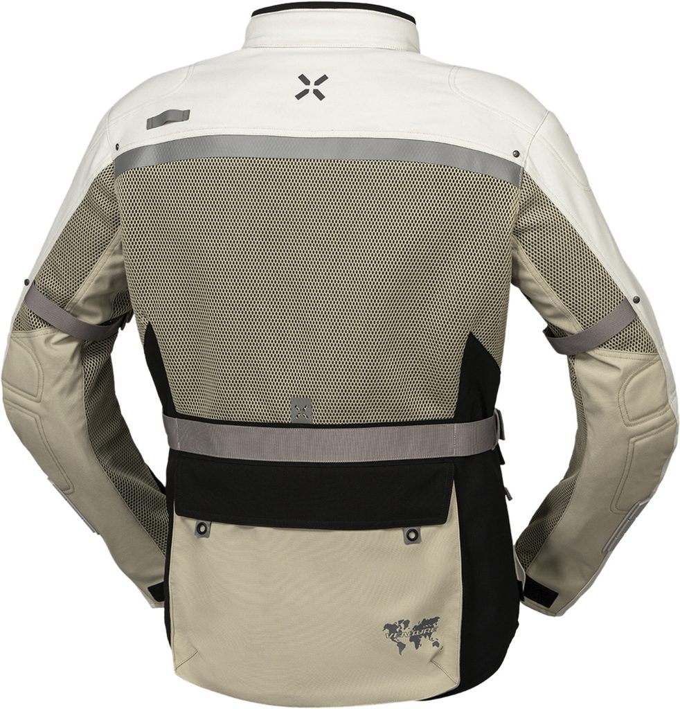 Na začátek jsme použili náš elastický materiál AeroMesh, který této bundě dodává schopnost udržet vás v chladu, když na tom nejvíce záleží, a podporuje volnost pohybu a prodyšnost. Poté jsme přidali celoplošné použití našeho vysoce odolného vnějšího materiálu X-Stretch, který zajišťuje, že se bunda při jízdě přizpůsobuje každému vašemu pohybu a navíc umožňuje našim návrhářům uzpůsobit bundu pro expanzi airbagu pro maximální bezpečnost - Venture Big Air 1.0 je Airbag Ready. Uvnitř se nachází lehká, vzdušná síťovina pro optimální tělesné klima a velkoplošná otevřená síťovina na hrudi, zádech a rukávech pro lepší odvětrávání.