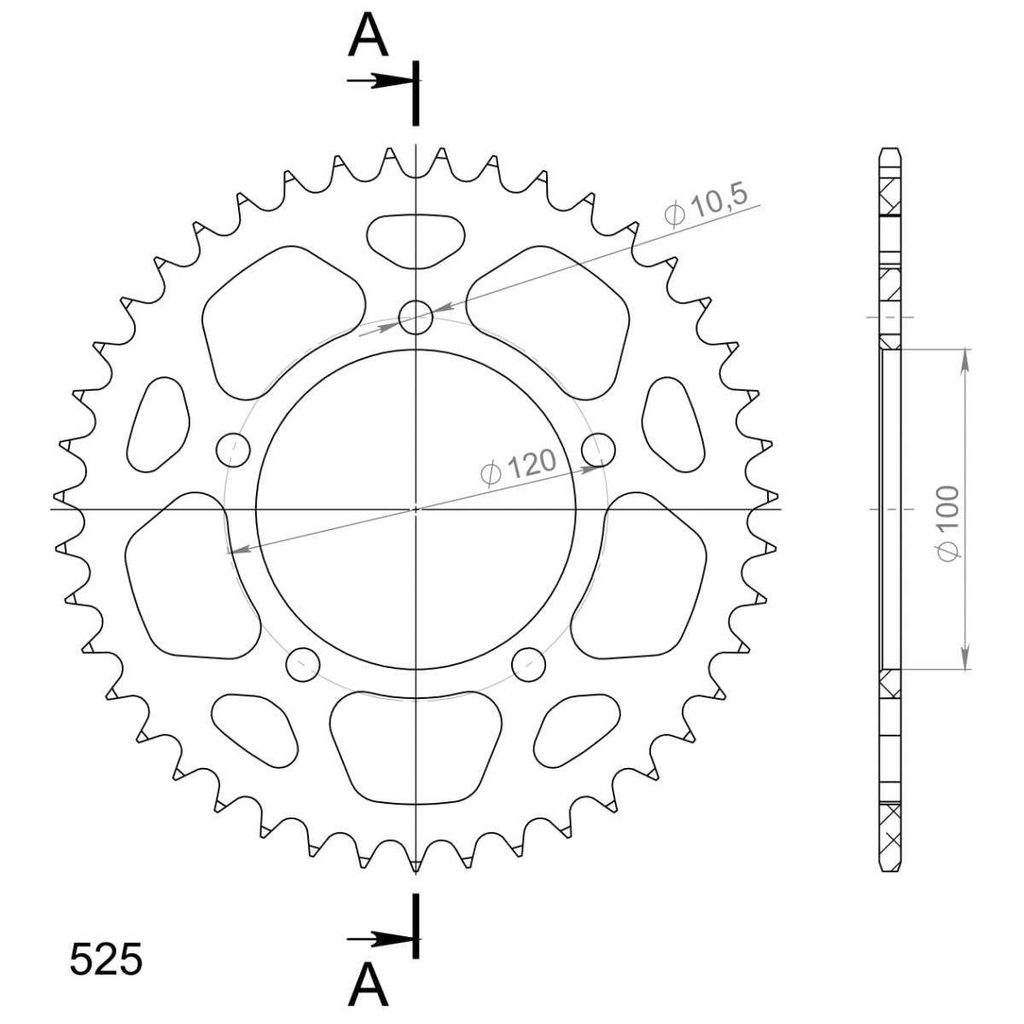 Hliníková reťazová rozeta SUPERSPROX RAL-702:43-BLK čierna 43T, 525