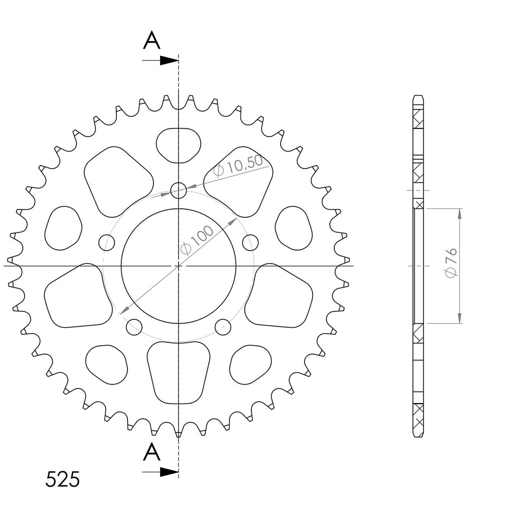 Hliníková reťazová rozeta SUPERSPROX RAL-7092:43-BLK čierna 43T, 525
