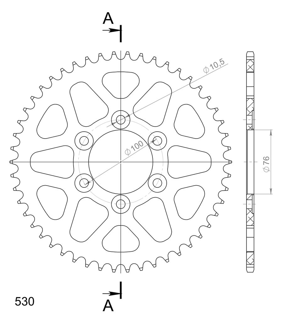 Hliníková reťazová rozeta SUPERSPROX RAL-816:50-BLK čierna 50T, 530