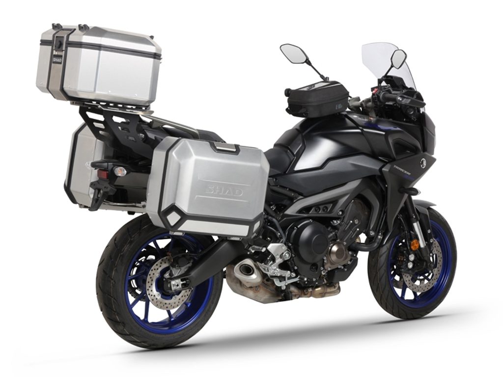 Kompletní sada černých hliníkových kufrů SHAD Terra obsahuje černý vrchní kufr TR37 s kapacitou 37L včetně plotny, pravý černý hliníkový kufr TR47 s kapacitou 47L a levý černý hliníkový kufr TR36 s kapacitou 36L kvůli umístění výfuku. Levý kufr tak nebude vyčnívat. Sada obsahuje vše, co potřebujete k montáži obou kufrů.