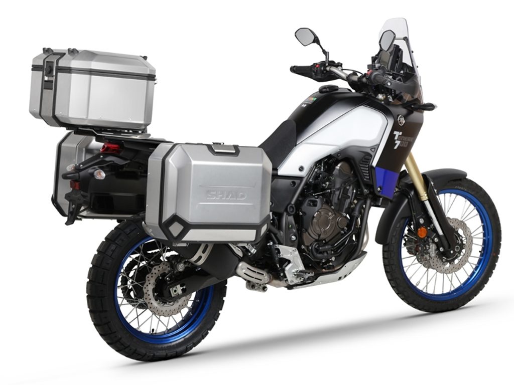 Kompletní sada hliníkových kufrů SHAD Terra obsahuje vrchní kufr TR48 s kapacitou 48L včetně plotny, levý hliníkový kufr TR47 s kapacitou 47L a pravý hliníkový kufr TR36 s kapacitou 36L kvůli umístění výfuku. Pravý kufr tak nebude vyčnívat. Sada obsahuje vše, co potřebujete k montáži obou kufrů.