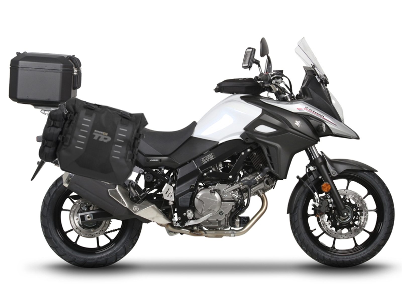 Kompletná sada sedlových brašní SHAD TERRA TR40 adventure a hliníkového kufra SHAD TERRA BLACK 37L vrátane montážnej sady SHAD SUZUKI DL 650 V-Strom