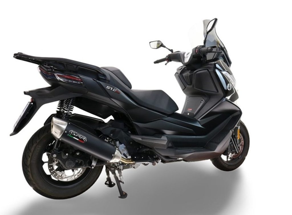 Tlumič výfuku skútru FURORE-X od společnosti GPR má černé hliníkové tělo s krytkami INOX 304 vyrobenými CNC obráběním. Má keramickou povrchovou úpravu, která odolává vysokým teplotám, a eliptický tvar o rozměrech 90 x 120 mm.