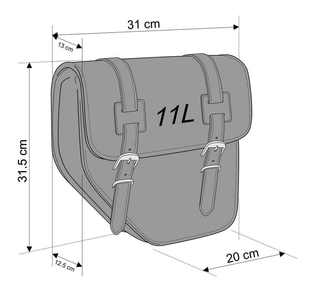 Kožená sedlová brašňa CUSTOMACCES IBIZA APM002N čierna ľavý, s univerzálnym držiakom