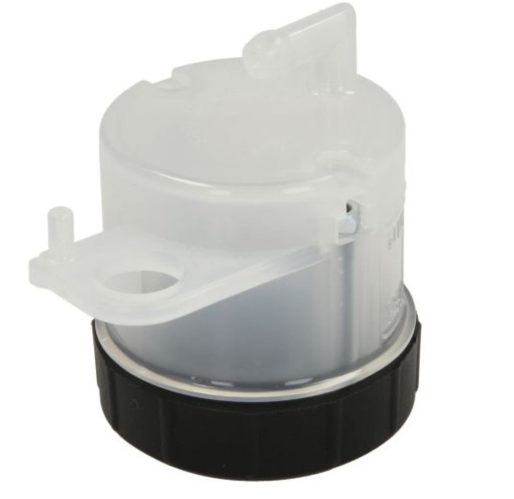 Nádobka na brzdovou kapalinu 45ml, bílé provedení, horizontální.