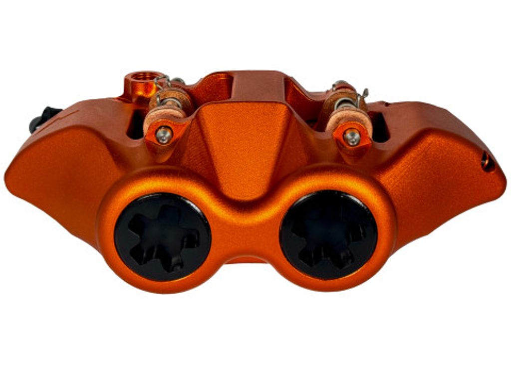 Radiální brzdový třmen ACCOSSATO, kovaný monoblok, rozteč 108mm, písty z hliníku.