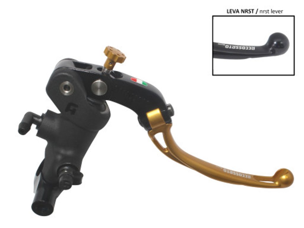 Accossato Radial Brake Master Cylinder For Motorcycles with 25,4mm diameter handlebarIn Forged Aluminium Black Anodyzing 19 x 20. The lever is colourf
