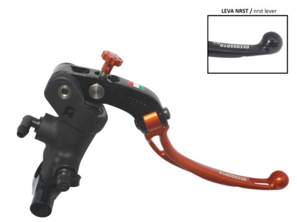 Accossato Radial Brake Master Cylinder For Motorcycles with 25,4mm diameter handlebarIn Forged Aluminium Black Anodyzing 19 x 20. The lever is colourf
