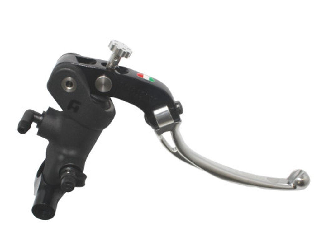 Accossato Radial Brake Master Cylinder For Motorcycles with 25,4mm diameter handlebarIn Forged Aluminium Black Anodyzing 19 x 20. The lever is colourf