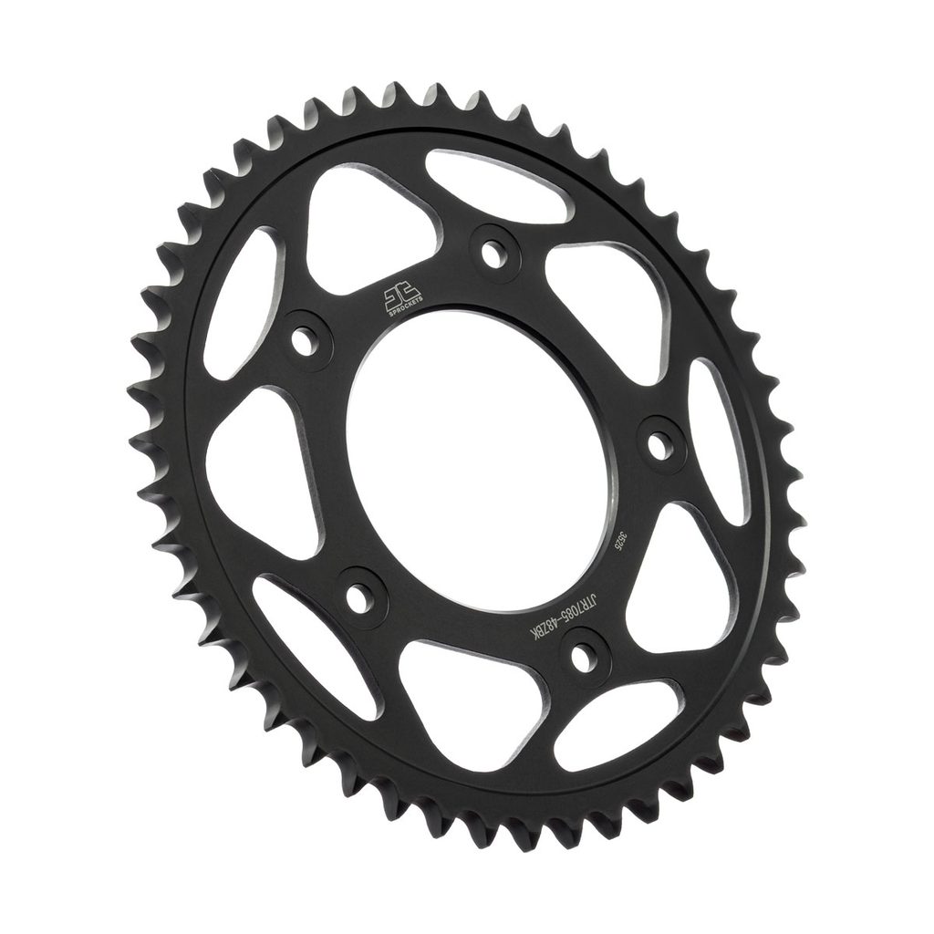 Ocelové zadní rozety JT Steel jsou vyráběny výhradně z nejkvalitnější uhlíkové oceli C49. Sortiment JT Steel nyní zahrnuje více než 2 500 dílů pro všechny motocykly a čtyřkolky (ATV).