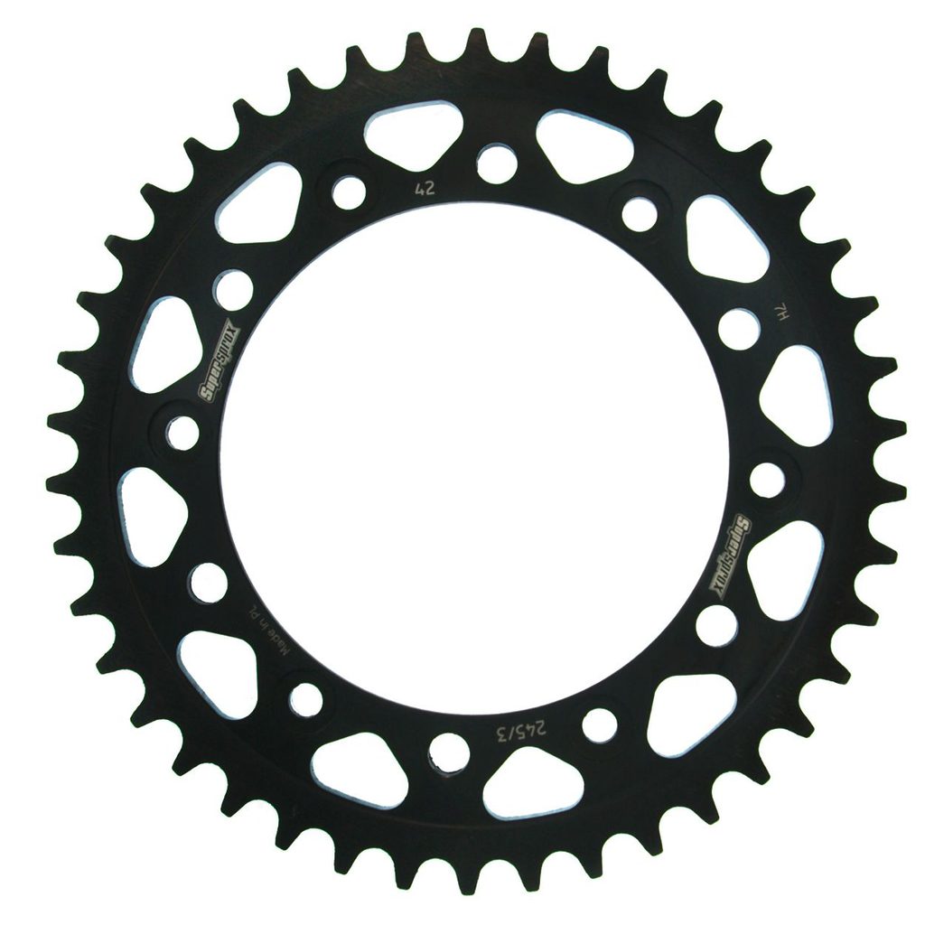 Široká nabídka pro silniční i off-road motocykly. Vyvinuto pro závody vytrvalostního typu – lehké, ale odolné i pro nejsilnější závodní stroje. Všechny ocelové závodní rozety Supersprox jsou v černé barvě!