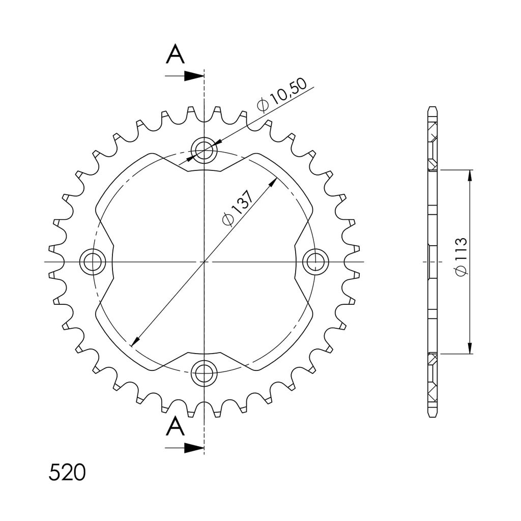 Rozeta -hliník SUPERSPROX RAL-1760:36-BLK čierna 36T, 520