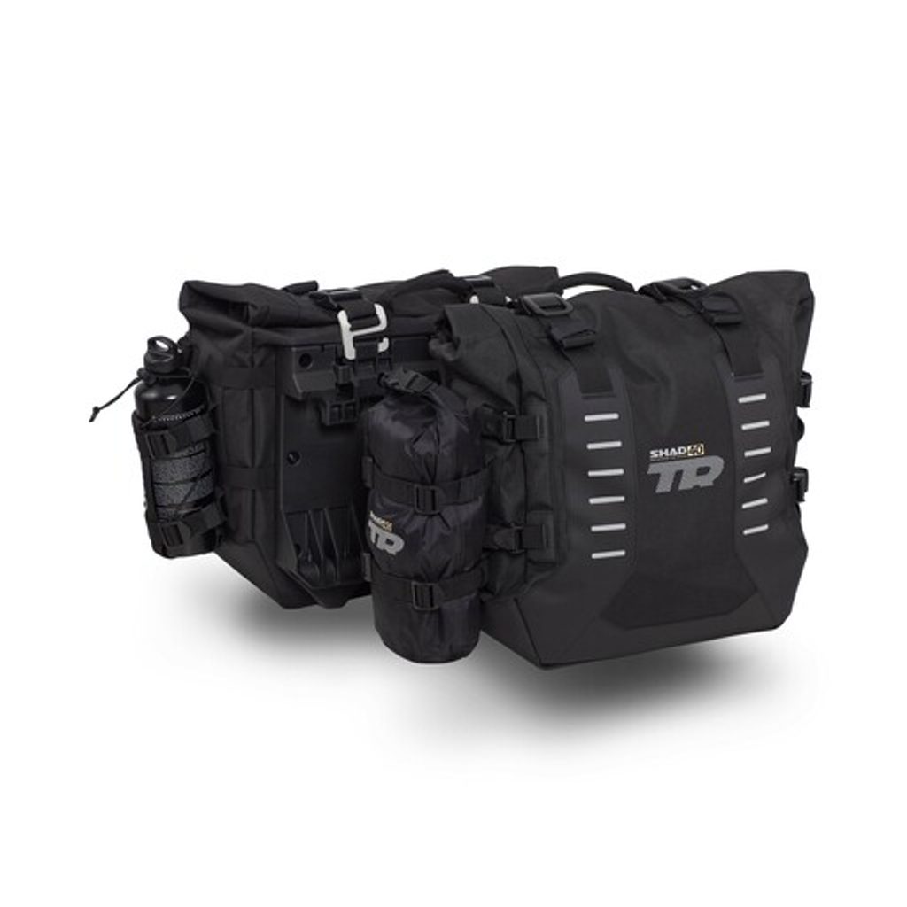 Sada ADVENTURE TERRA SHAD obsahuje sadu sedlových brašen TR40 určených pro jízdu v terénu a montážní sadu 4P SYSTÉM pro upevnění.