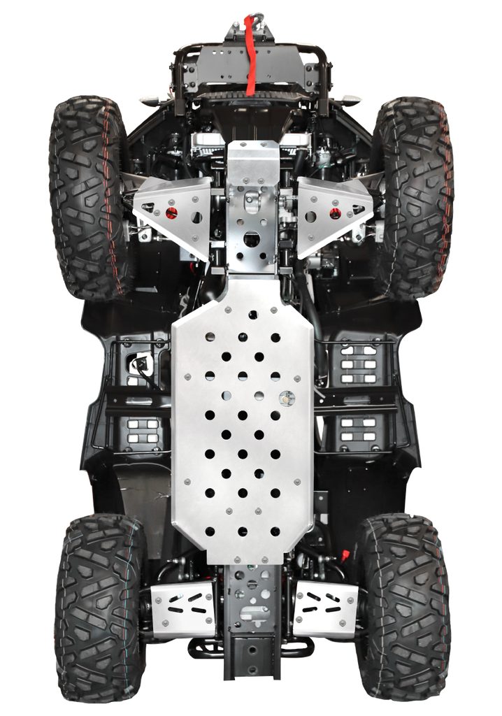Kompletní kryty podvozku Shark Accessories, odolná ochrana spodní části čtyřkolky, z anodizovaného a lehkého 4 mm hliníku letecké kvality, montážní otvory pro snadnou údržbu, výřezy pro snadnější čištění čtyřkolky, včetně integrovaných krytů nášlapů, nízká hmotnost, snadná montáž