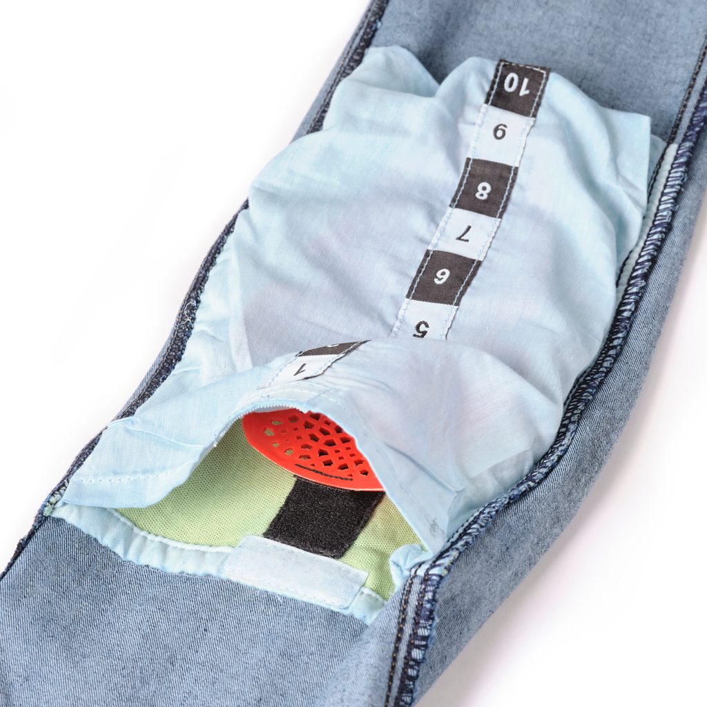 • Ultra-lehké, větrané kyčelní chrániče a výškově nastavitelné kolenní chrániče, úroveň 1 (vše CE certifikované, odnímatelné)
