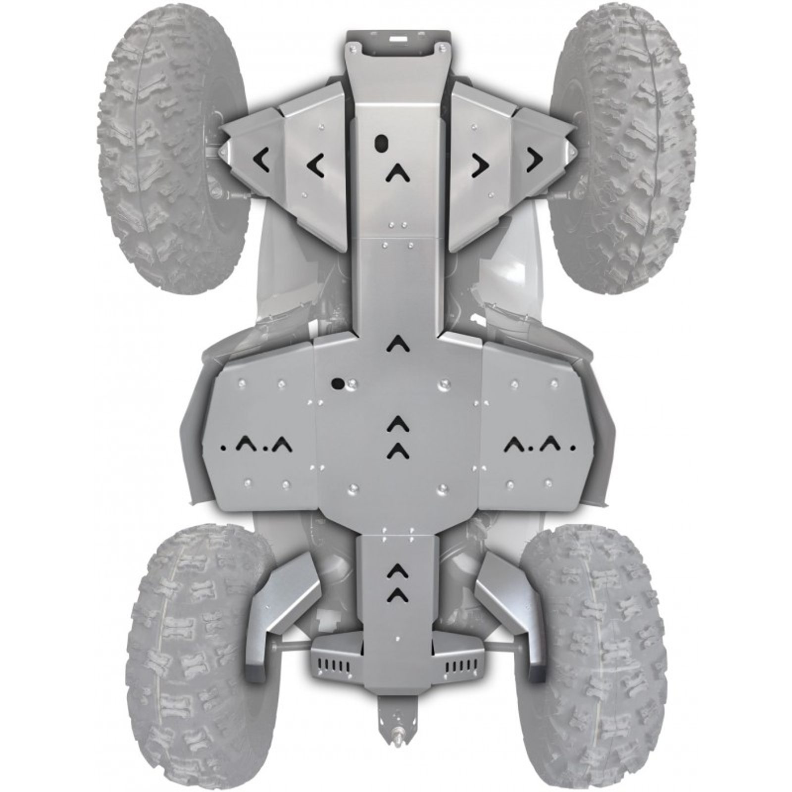 Kompletní sada hliníkových krytů podvozku, špičková kvalita, vysoká odolnost, tvrzený dural letecké kvality tl. 5 mm, snadná montáž, nízká hmotnost, sada obsahuje přední, střední a zadní kryt, 4 kryty ramen a spojovací materiál, vyrobeno v Evropě