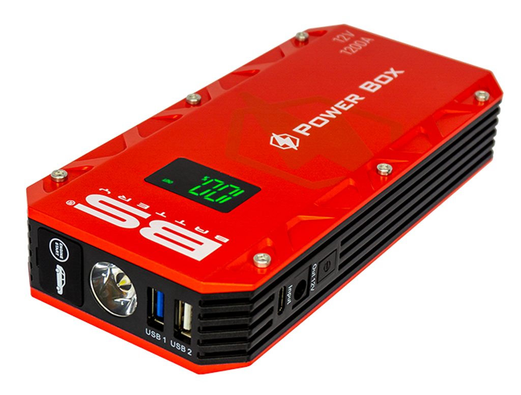 Power BOX PB-02 je dokonalé řešení záložního napájení schopné dodat 1200A pro motocykly, auta, lodě,.. nabíjet USB zařízení (smartphone, tablety,..) a nabízí nouzové osvětlení.